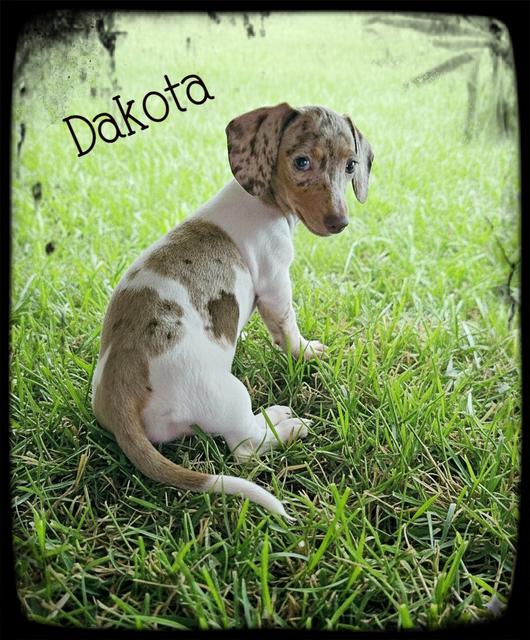 This is Dakota! She's a smooth chocolate dapple piebald with one blue eye and one green eye. She will be a future mama.