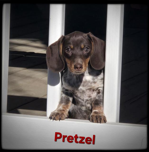 Introducing our newest baby boy, Pretzel! He's a smooth chocolate piebald. He will be an eligible stud in August.