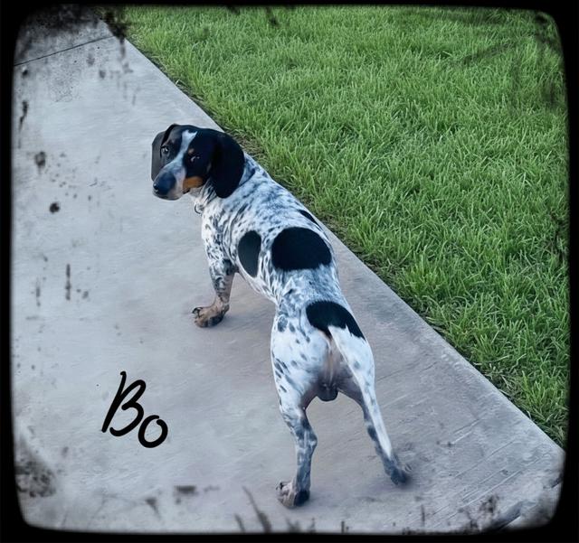 This is Bo! He is a smooth blk/tan piebald that we will be using as a temporary stud until Pretzel is old enough. He is a grandson of our former dogs, Pepper and Stetson!
