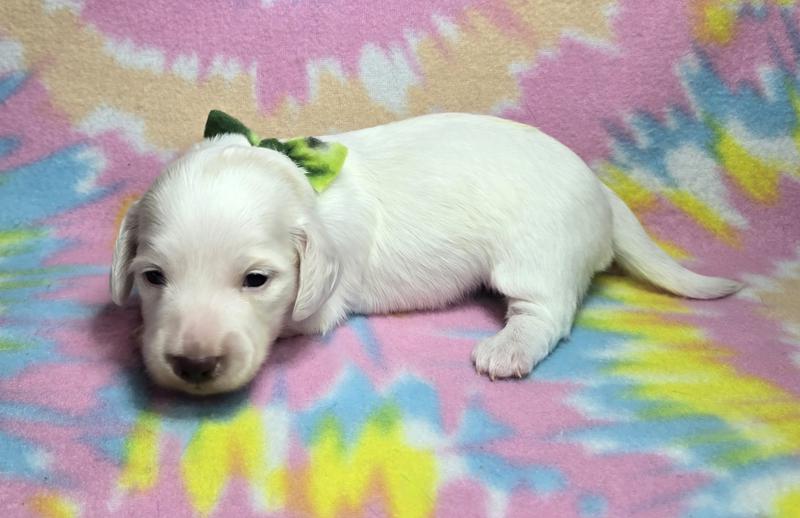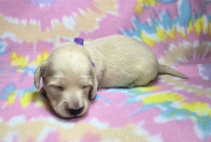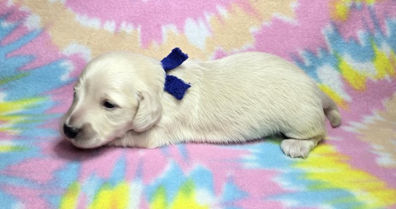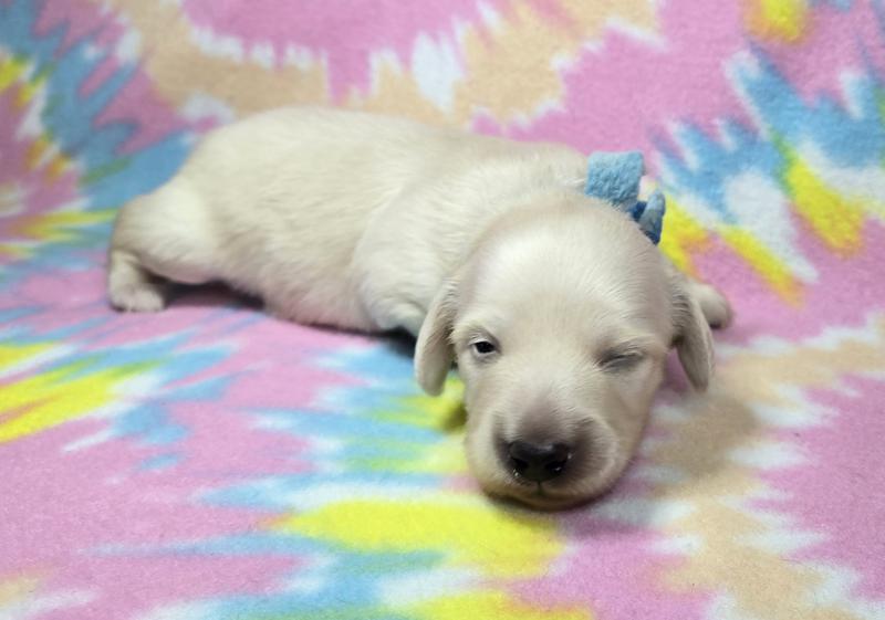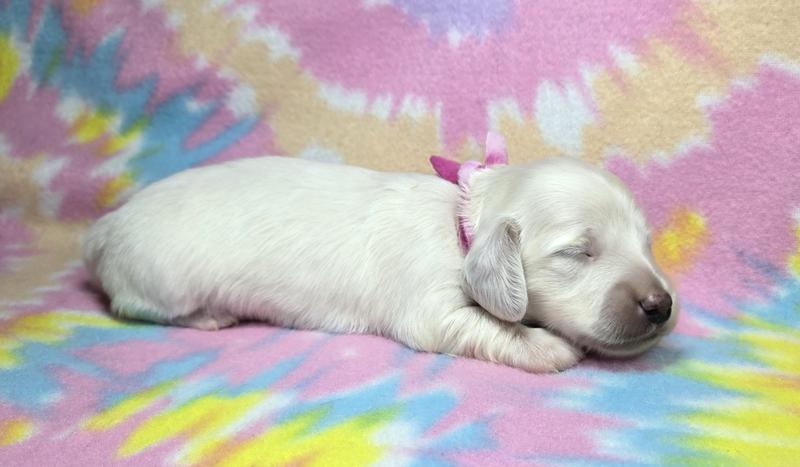 Tess is loving her home with the Vanleys! She is an English cream from Starla and Remington. Like some of her other siblings, she prefers her mama only!